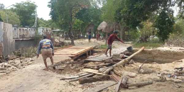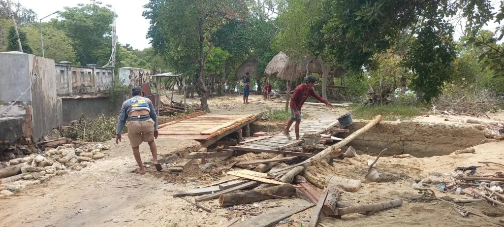 Warga Bringsang Sumenep Gotong Royong Perbaiki Jembatan Darurat