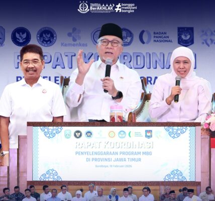 SURABAYA, Jumat 20 Februari 2026 – Kepala Kejaksaan Tinggi Jawa Timur yang diwakili Wakajati Saiful Bahri Siregar, S.H., M.H., menghadiri Rapat Koordinasi Tata Kelola Penyelenggaraan Program Makan Bergizi Gratis (MBG) di Ruang Rapat Kantor Gubernur Jawa Timur, Kamis (19/2/2026). Rapat dipimpin oleh…