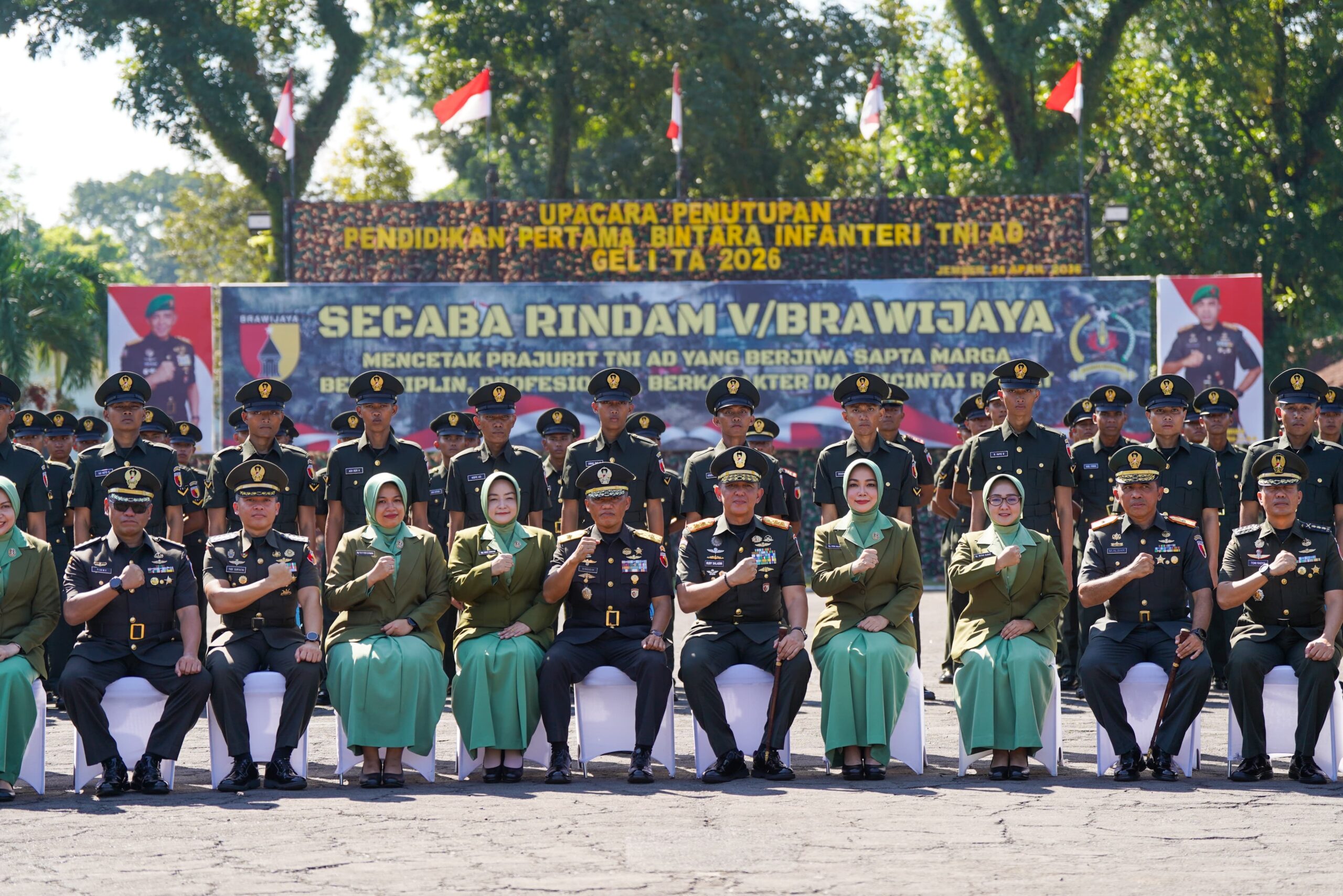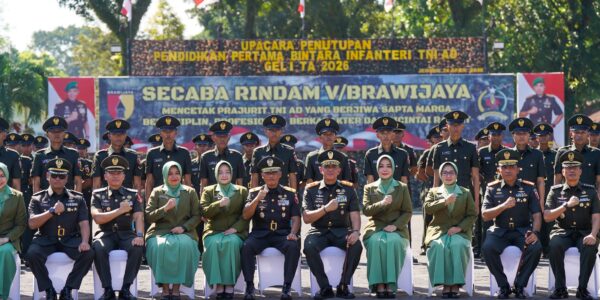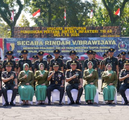 JEMBER, Sabtu 25 April 2026 – Ketua Persit Kartika Chandra Kirana PD V/Brawijaya Ibu Vira Rudy Saladin mendampingi Bapak Pangdam V/Brawijaya, Mayjen TNI Rudy Saladin, M.A menghadiri upacara penutupan Dikmaba Infanteri TNI AD Gelombang I TA 2026 di Secaba Rindam V/Brawijaya, menegaskan…