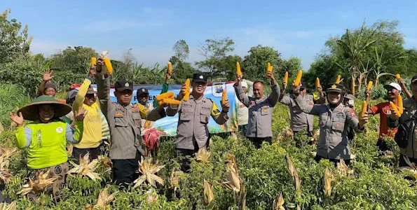 Wujudkan Program Ketahanan Pangan, Polres Probolinggo Bersama Kelompok Tani Panen Jagung di Bantaran