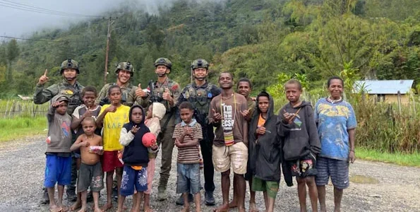 Personel Ops Damai Cartenz Tebar Keceriaan Bersama Anak-anak di Distrik Bibida Paniai