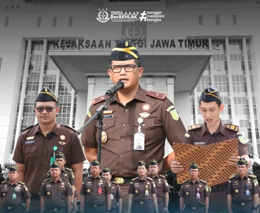 SURABAYA, Senin 24 November 2025 – Wakil Kepala Kejaksaan Tinggi Jawa Timur, Dr. Hari Wibowo, S.H., M.H., memimpin pelaksanaan apel pagi yang berlangsung di halaman Kantor Kejati Jatim, Senin (24/11/2025). Apel tersebut diikuti oleh para Asisten, Koordinator, serta seluruh pegawai dengan khidmat, tertib, dan penuh kedisiplinan.