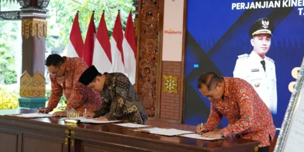 MOJOKERTO, 24 Januari 2026 – Pemerintah Kabupaten Mojokerto menggelar kegiatan Penandatanganan Perjanjian Kinerja dan Pakta Integritas Tahun 2026 yang sekaligus menjadi momentum Deklarasi Anti Korupsi. Acara berlangsung di Pendopo Graha Maja Tama (GMT) pada Kamis (22/1/2025) sore. Kegiatan dihadiri Bupati Mojokerto…