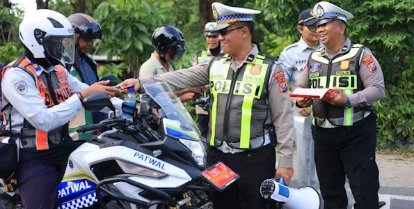 Polres Gresik Gencarkan Edukasi Keselamatan, Pengguna Jalan Tertib dapat Cokelat