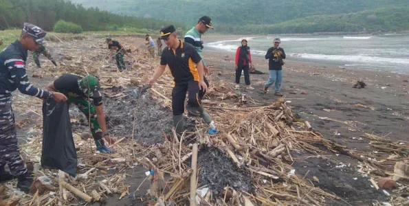 Peduli Lingkungan, Jajaran Polres Jember Bersih-bersih Pantai Puger
