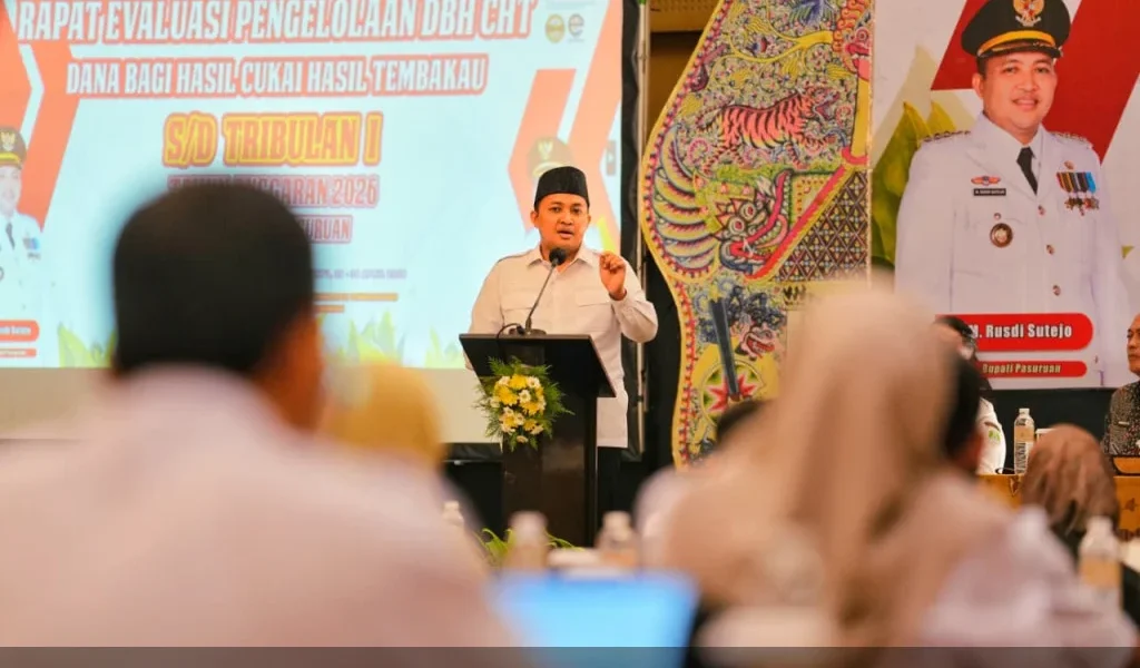 PASURUAN, 30 April 2026 – Pemerintah Kabupaten Pasuruan menggelar Rapat Evaluasi Pengelolaan Dana Bagi Hasil Cukai Hasil Tembakau (DBHCHT) Tribulan I tahun 2025. Rapat tersebut dihadiri oleh sejumlah kepala dinas teknis pengampu program DBHCHT dan dipimpin langsung oleh Bupati Pasuruan, HM Rusdi Sutejo, Rabu (29/4/2026) sore.
