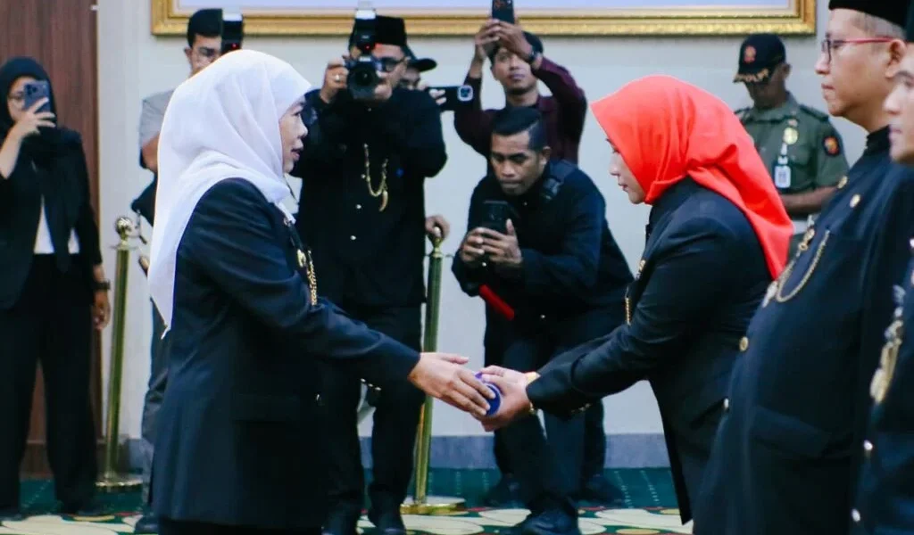 SURABAYA, 26 MARET 2026 – Gubernur Jawa Timur Khofifah Indar Parawansa melantik dan mengambil sumpah/janji jabatan 128 Kepala Sekolah SMA, SMK, dan SLB Negeri di lingkungan Pemerintah Provinsi Jawa Timur di Gedung Negara Grahadi Surabaya, Rabu (25/3/2026).
