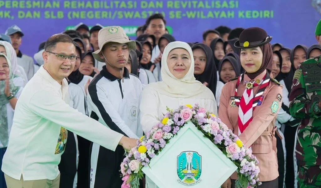KEDIRI, 27 JANUARI 2026 – Gubernur Jawa Timur Khofifah Indar Parawansa meresmikan hasil rehabilitasi dan revitalisasi 26 SMA, SMK, dan SLB negeri maupun swasta di Kabupaten dan Kota Kediri, Minggu (25/1/2-26). Rehabilitasi dan revitalisasi merupakan bagian dari transformasi pendidikan Jawa Timur yang berkelanjutan.