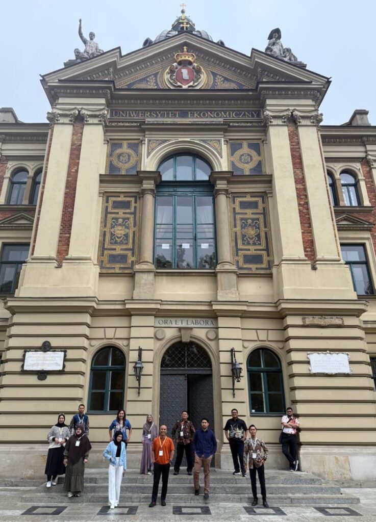 POLANDIA, Kamis 25 September 2025 – Nuansa Internasional semakin mengemuka di lingkungan Departemen Manajemen FEB UNAIR. Bukan hanya pasif dalam melakukan hubungan internasional, namun juga aktif melakukan aktivitas mengglobal. Hal tersebut salah satunya terlihat dalam akrivitas summer course dengan tema “Future Of Research” yang dilakukan oleh Cracow University Polandia. Dua dosen Manajemen FEB UNAIR, Prof. Dr. Gancar Candra Premananto and Dr Windijarto diundang sebagai pemateri di acara yang berlangsung sejak tanggal 22- 26 September 2025. Acara diikuti oleh 29 mahasiswa dari berbagai negara seperti Indonesia, Polandia, Denmark, Jerman, dan Hungaria berkumpul untuk kuliah klasikal, berdiskusi, bermain peran namun dengan tujuan membangun kerja sama riset antar mahasiswa antar negara.