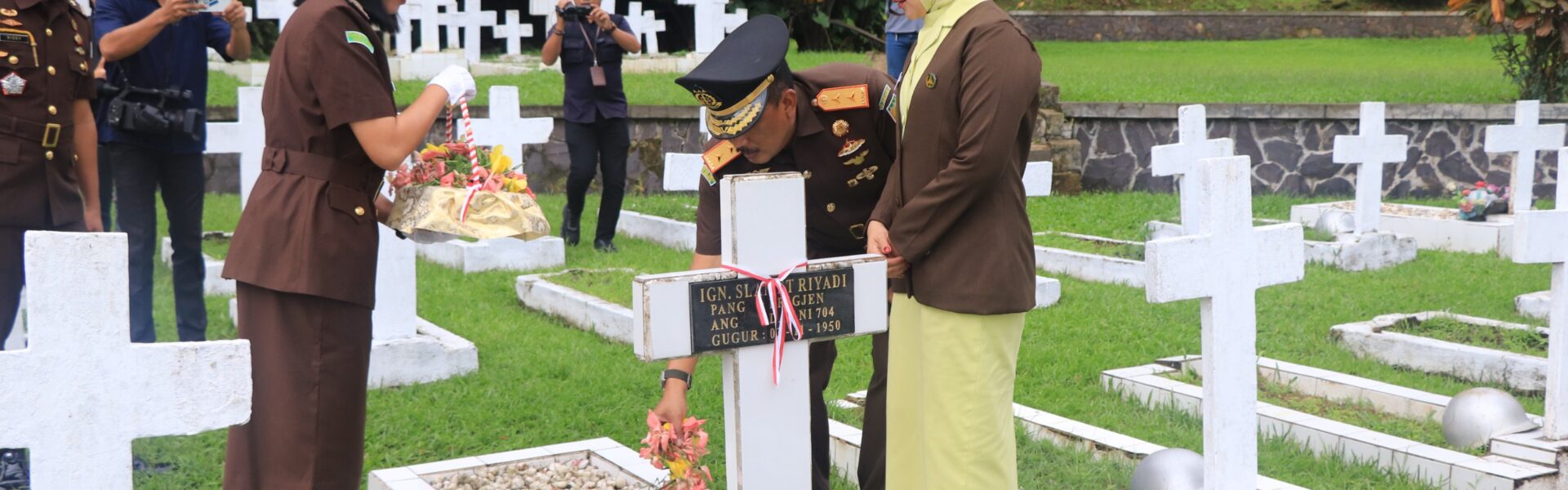 Kajati Maluku Agoes SP selaku Pimpinan Ziarah, memimpin seluruh peserta upacara melaksanakan penghormatan khusus kepada Arwah para Pahlawan, Mengheningkan Cipta dan Peletakan Karangan Bunga serta Penaburan Bunga di Makam para Pahlawan yang diikuti oleh seluruh peserta ziarah.