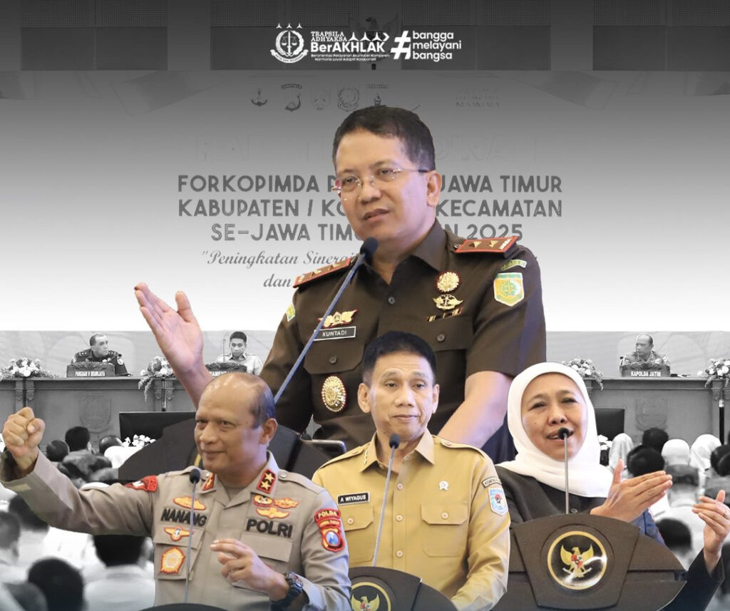 SURABAYA, Rabu 05 November 2025 – Kepala Kejaksaan Tinggi Jawa Timur, Dr. Kuntadi, S.H., M.H., menjadi narasumber dalam Rapat Koordinasi Peningkatan Sinergitas Menjaga Kerukunan, Keamanan, dan Ketertiban Umum yang diselenggarakan oleh Pemerintah Provinsi Jawa Timur di Grand City Convention and Exhibition Surabaya, Selasa (4/11/2025).