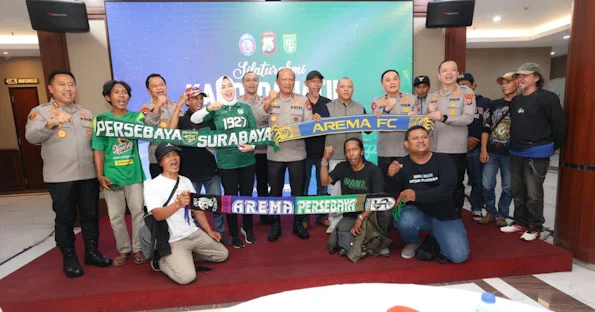 Surabaya, 09 April 2026– Upaya rekonsiliasi suporter di Jawa Timur terus diperkuat. Kapolda Jawa Timur Irjen Pol Nanang Avianto mempertemukan perwakilan Aremania dan Bonek dalam audiensi di Mapolda Jatim, Rabu (08/04/2026), guna memastikan pertandingan Arema FC kontra Persebaya Surabaya berlangsung aman dan damai.