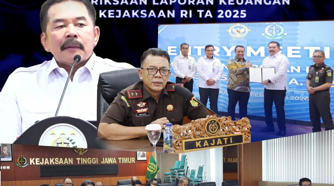SURABAYA, Kamis 05 Februari 2026 – Kepala Kejaksaan Tinggi Jawa Timur Agus Sahat ST, S.H., M.H., bersama Wakajati, para Asisten, dan jajaran Pemeriksa pada Bidang Pengawasan, mengikuti Entry Meeting Pemeriksaan Laporan Keuangan Kejaksaan RI Tahun Anggaran 2025 oleh BPK RI secara daring dari Ruang Rapat Kejati Jatim, Rabu (4/2/2026).