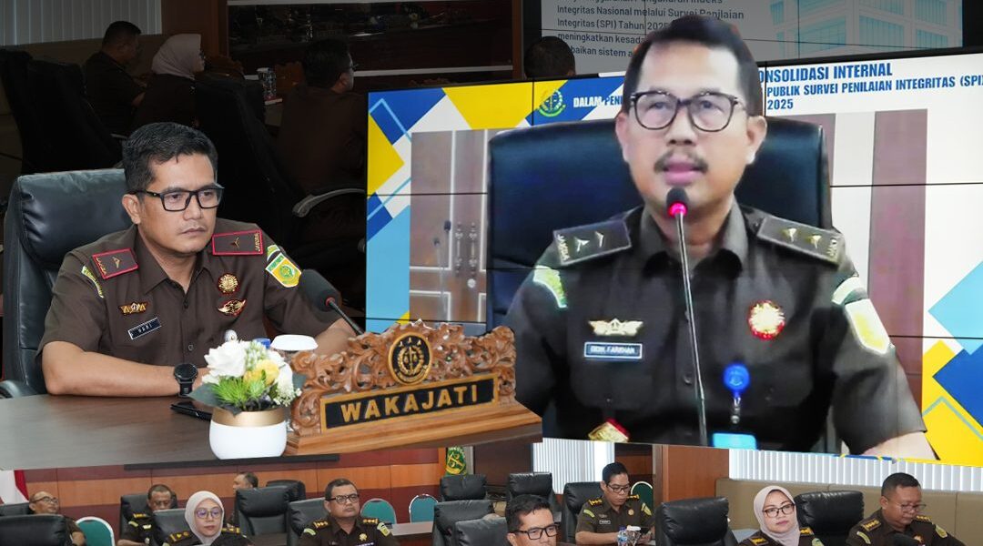 SURABAYA, Selasa 14 Oktober 2025 – Wakil Kepala Kejaksaan Tinggi Jawa Timur, Dr. Hari Wibowo, S.H., M.H., didampingi Asisten Pembinaan, Asisten Tindak Pidana Umum, serta Asisten Pengawasan, mengikuti Sosialisasi dan Konsolidasi Internal Peningkatan Kualitas Pelayanan Publik melalui Survei Penilaian Integritas (SPI) Tahun 2025) secara daring di Ruang Rapat Kajati Jatim, Senin (13/10/2025).
