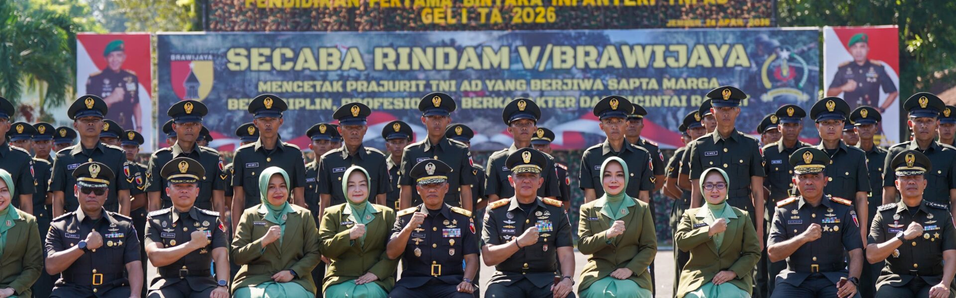 JEMBER, Sabtu 25 April 2026 – Ketua Persit Kartika Chandra Kirana PD V/Brawijaya Ibu Vira Rudy Saladin mendampingi Bapak Pangdam V/Brawijaya, Mayjen TNI Rudy Saladin, M.A menghadiri upacara penutupan Dikmaba Infanteri TNI AD Gelombang I TA 2026 di Secaba Rindam V/Brawijaya, menegaskan peran strategis Persit dalam mendukung pembinaan prajurit dan keluarga besar TNI Angkatan Darat.