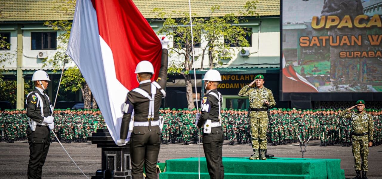 SURABAYA, Rabu 18 Maret 2026 – Kodam V/Brawijaya menggelar Upacara Bendera 17-an di Lapangan Ahmad Yani Makodam V/Brawijaya sebagai wadah penguatan komitmen dan profesionalisme prajurit serta pegawai ASN, Selasa (17/03/2026).