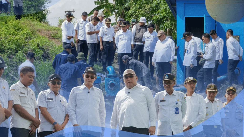 LAMONGAN, 30 April 2026 – Dirjen Prasarana dan Sarana Pertanian Kementerian Pertanian Andi Nur Alamsyah didampingi Bupati Lamongan Yuhronur Efendi pada Rabu (29/4), melakukan monitoring pompanisasi di Waduk Delikguno Desa Pengumbulanadi Kecamatan Tikung. Meninjau penempatan, penyerahan dan uji coba alsintan (alat dan mesin pertanian) di Lamongan berjalan lancar, beliau optimis Petani Lamongan akan dapat tetap menanam dan terus berproduksi dengan adanya mitigasi lebih awal dalam menghadapi ancaman El Nino.