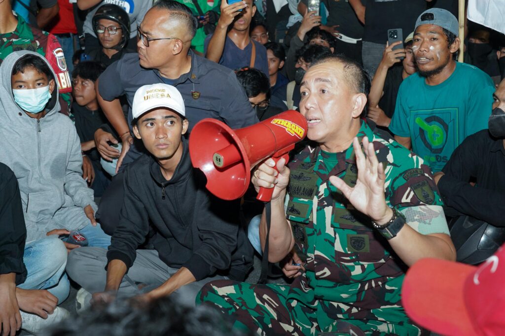 Kolonel Nico sendiri menegaskan, Pangdam terus mengingatkan agar anggota tidak menggunakan kekerasan saat berhadapan dengan massa. “Situasi makin kacau. Tapi Pangdam memerintahkan kami menghalau massa dengan cara humanis, tanpa kekerasan. Hanya ajakan lisan. Kami minta ke massa, ayo mundur, mundur,” ujar Kolonel Nico.