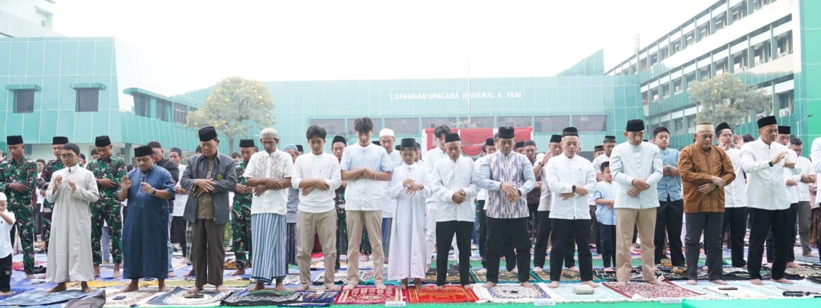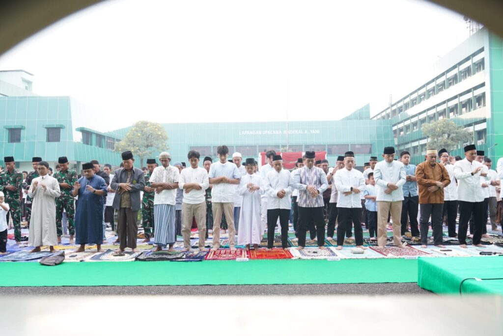 Kegiatan berlangsung Sabtu 21 Maret 2026 di Lapangan Ahmad Yani Makodam V/Brawijaya Surabaya, diikuti sekitar 2.500 jamaah, dengan Imam Ustadz Achmad Rafiud Cholsa serta khotib Dr Abdul Haris yang menyampaikan pesan keagamaan dan kebangsaan.