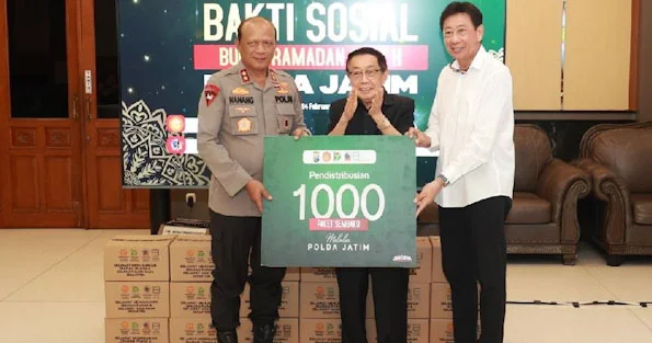 Surabaya, 25 Februari 2026– Kepolisian Daerah Jawa Timur menerima penyerahan bantuan sosial dari Yayasan Bakti Persatuan berupa 1.000 paket sembako di Lobi Gedung Tribrata Mapolda Jatim, Selasa (24/02/2026).
