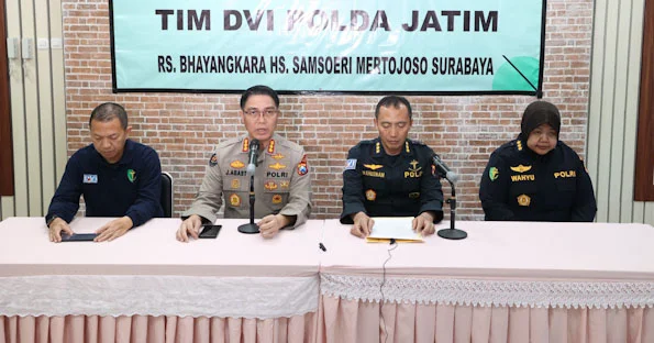 Hal itu seperti disampaikan oleh Kabid Humas Polda Jatim, Kombes Pol Jules Abraham Abast saat konferensi Pers di Posko DVI RS Bhayangkara Surabaya, Sabtu malam (11/10/2025).