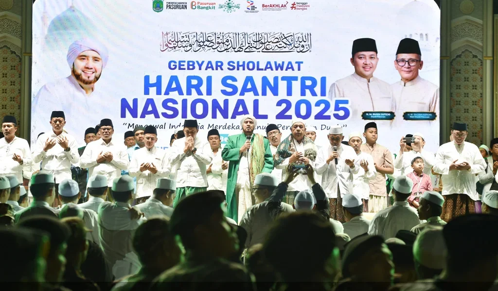 PASURUAN, 26 Oktober 2025 –Puluhan ribu umat islam dari berbagai Kecamatan di Kabupaten Pasuruan tumpah ruah menghadiri Gebyar Sholawat dalam rangka Hari Santri Nasional di Lapangan Patal Grati, Selasa (21/10/2025) malam.