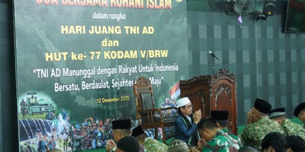 SURABAYA, Jumat 12 Desember 2025 – Dalam rangka memperingati Hari Juang TNI AD dan HUT ke-77 Kodam V/Brawijaya Tahun 2025, Pangdam V/Brawijaya Mayjen TNI Rudy Saladin, M.A., memimpin kegiatan doa bersama yang digelar di Masjid At-Taqwa Makodam V/Brawijaya pada Jum’at (12/12/2025). Kegiatan…