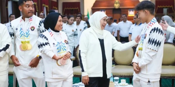 SURABAYA, 17 APRIL 2026 – Gubernur Jawa Timur Khofifah Indar Parawansa memberikan penghargaan berupa bonus apresiasi senilai total Rp1,845 miliar kepada 15 atlet paralimpik dan dua pelatih Jawa Timur yang berprestasi pada ajang ASEAN Para Games 2025 di Thailand. Penyerahan bonus…