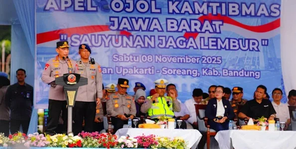 Bandung, 09 November 2025 – Kapolri Jenderal Listyo Sigit Prabowo memimpin apel ojek online (ojol) kamtibmas ‘Sauyunan Jaga Lembur’ Polda Jawa Barat di Lapangan Upakarti, Soreang, Kabupaten Bandung, Jawa Barat (Jabar), Sabtu, (8/11/2025). Kegiatan ini merupakan sinergisitas untuk saling menjaga keamanan…