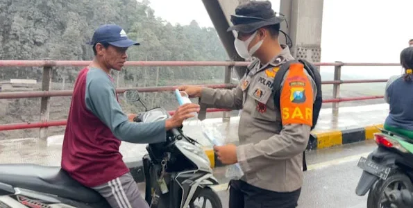 Tim SAR Polda Jatim Bagikan Masker ke Warga Terdampak Abu Vulkanik Semeru