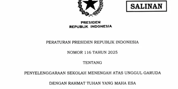 JAKARTA, 20 FEBRUARI 2026 — Pemerintah resmi menetapkan Peraturan Presiden (Perpres) Nomor 116 Tahun 2025 tentang Penyelenggaraan Sekolah Menengah Atas (SMA) Unggul Garuda. Regulasi ini ditandatangani Presiden Republik Indonesia Prabowo Subianto pada 20 November 2025 sebagai langkah strategis memperkuat kualitas pendidikan…