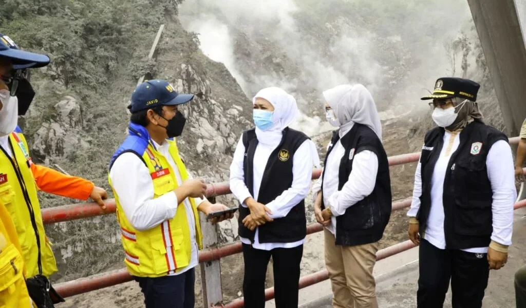 Gubernur Khofifah mendatangi sejumlah lokasi terdampak APG Semeru, mulai titik pengungsian di Kecamatan Pronojiwo, tepatnya di SDN 4 Supiturang, meninjau dengan Dapur Umum, meninjau Desa Sumbersari, serta juga meninjau Jembatan Gladak Perak.